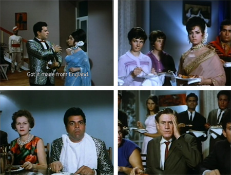 Sunil decides to take some revenge: he shows up for Anita’s next party carrying a black and white cat (which Sharmila drops on the floor) and dressed in a loud brocade jacket, hijacking the proceedings with his rude behavior and bad table manners. This traumatizes Anita and a battalion of bored and disapproving gora extras, but makes me giggle helplessly.