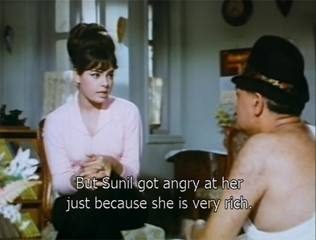 They never actually seem to talk to each other (she doesn’t even ask him why he hates the moneyed!). It comes as no real surprise that when Sunil finally discovers that Anita is actually very wealthy, he’s angry.
