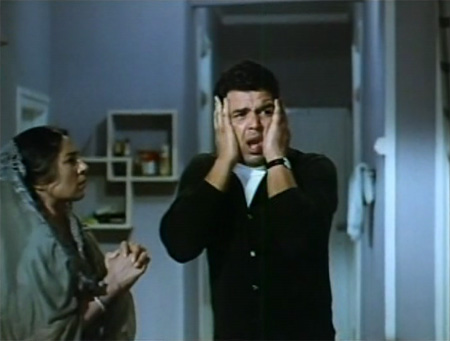 He sulks through Meena’s musical pleadings for him to forgive and forget—a very wonderful qawwali-type song, “Allah Yeh Ada.” The lyrics are hilarious, all about the stubborn traits of good-looking people. Love. In fact this middle part of the movie is the only part I truly enjoyed, and it was only for two songs and Dharmendra’s formidable talent for comedy.