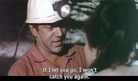 I guess growing up with a man who has never gotten over the death of his wife and has made your life miserable as a result would sour you on the whole institution. She is adamant, to her father’s disgust. Her friends have come with her to tour the mine, and she takes them down below ground. It turns out that Amar the handsome singing forest guy is a supervisor in her father’s mine, and he’s pleased to see her again (he rescues her when she wanders a bit too close to a blasting site—so very Mills & Boon!).