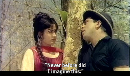 haha, the heroine’s dad praising the hero’s looks?? mehmood’s loin clothes?? this movie is full of goodies!!! XD (still not done with reading the review :P)