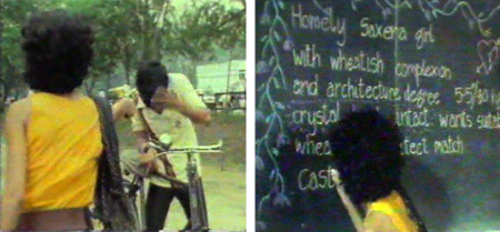 Radha is a feisty sort: a staunch feminist and supporter of the poor and downtrodden, and not one to take any insult lying down. On her way to class that same morning she takes care of an eve-teaser (sprays him with ink) and then exacts her revenge on Lakes on the classroom blackboard.