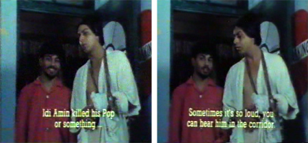 I’m still not clear on what the enigmatic (and lengthy) title really means…but it doesn’t really matter. And here is Shahrukh’s only other scene, where he explains why Kasozi grinds his teeth while he sleeps.