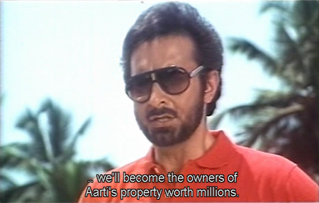 Back in Bombay, Sanjay is very angry to discover that unless her body is found, Aarti cannot be declared dead until a period of 7 years has passed. Aarti’s lawyer (Mangal Dhillon) clearly doesn’t care much for Sanjay, and he is pleased to also inform him that during that time, her fortune will be administered by the courts, who will pay the children’s and household expenses.