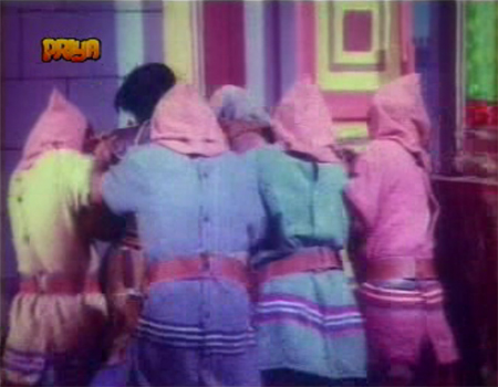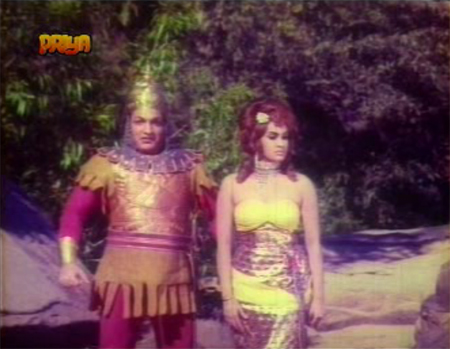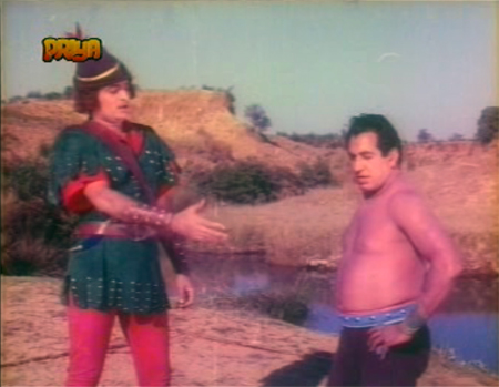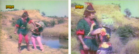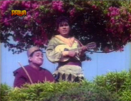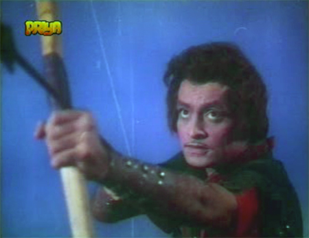 Essentially the plot consists of Robin Hood (Prashant) wooing Maid Marian (Praveen Choudhary) and collecting a band of Merry Men (Bhagwan as Friar Tuck, wrestler Saudagar Singh as Little John, and an unknown actor—to me, hint hint—as Alan-a-Dale):