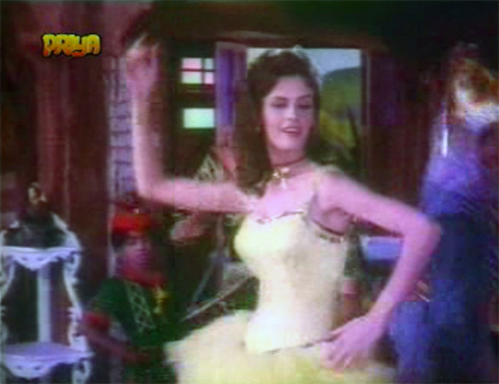 Jeevan Kala appears in some sort of formal toga-sheath-dress to dance to my favorite number, “Chik Chari”: