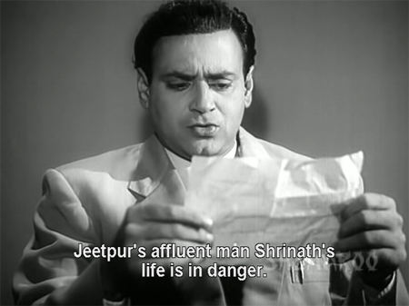 He asks Rajesh to help him solve the murder, and the rest of the film follows Rajesh as he pursues a mysterious “Black Shadow Man” and tries to untangle the knot of relationships and motives, and falls in love with the enigmatic Shobha. Why did Shobha steal the will, and did she kill Shrinath to get it? Or did the Doctor, or the Manager, or Dinanath—all with pretty good motives—kill him?