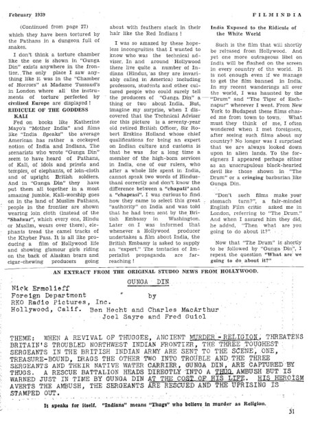Ha ha! I mentioned Temple of Doom above too—reminded me of that. And Gunga Din wasn’t banned everywhere in India—there was a whole brouhaha about that too. Bengal didn’t ban it, for instance, and some Indian journalists there even liked the film which made Baburao apoplectic.