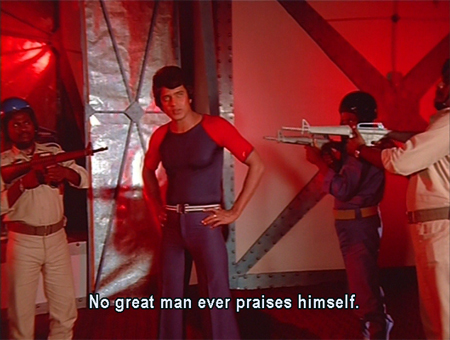 The beauty of Surakksha lies in the triumph of imagination over economics. I pretty much have to love and respect a filmmaker who spends most of his spy-movie budget on wallpaper and furnishings. This lacks the yellow plastic locusts of its sequel Wardat, sadly, but compensates by making said locusts appear positively high-tech in comparison to what GMG-9 encounters here. And the cinematography, courtesy of director-producer Nagaich in a triple threat, is really interesting. Crazy angles, migraine-inducing lighting…it’s all there. This writeup is even more screenshot-heavy than usual, due to the spectacular visuals which have to be seen to be believed. No real attempt to link plot points together is made: the story consists mostly of random (stolen from Bond) events which serve as an excuse for plenty of action and accessories which are a cracktastic tribute to the Indian spirit of jugaad.