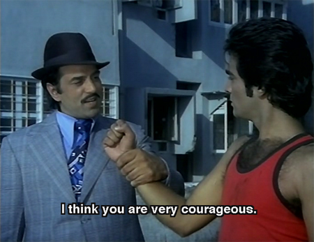 Now harboring a snake in his bosom, and with his young friends (including his real lost brother) back on the wrong path, what will happen to Ajit’s plans for vengeance? Will he succeed against the odds? Will Munna be reunited with Rachna? Will Ajit find his Munna eventually? Will any of them survive the spectacular Masala Death Trap in Sangram Singh’s lair, where the only thing standing between Munna and a fiery death are a complicated pulley system and the strength of Dharmendra’s manly biceps?