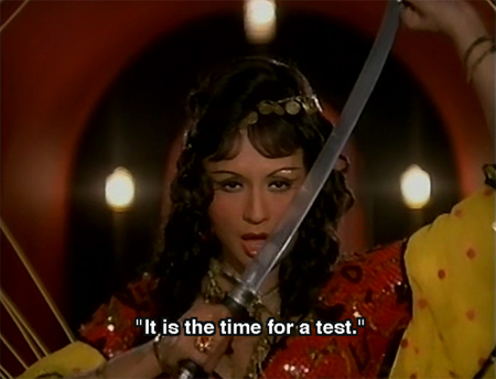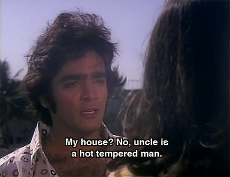 I have to admit to a certain amount of fatigue with this sort of 70s masala flick. After about the 100th film of this type, the outlandish sets/costumes/stunts/plots, etc., become tiresome. In general I can’t watch too many 70s films in a row…there’s a sleaziness and meaness to them that I find more than a little off putting.