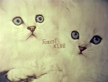 But I digress. Following cryptic instructions from his chief, GMG-9 heads to a nightclub. Even the knowledge that I’m about to be flogged with a musical number cannot interfere with my pleasure at the sight of the sign outside. Kittehs!
