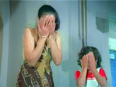 Making him dizzy does not make Jackson talk, and Hiralal is furious. Cut to Jackson’s balloon-filled home, where his wife Maggi (Prema Narayan) and obnoxiously precocious son-daughter (hard to tell), whose birthday it is, are bemoaning his disappearance. A large crate is delivered, ostensibly from Jackson, but instead of little Monu’s birthday scooter the crate contains…the body of Jackson!