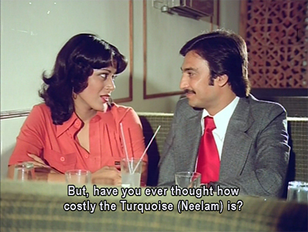 Criminal mastermind Neelam (Mala Jaggi, who is far more charismatic and fun to watch than the heroine, as usual) seduces dashing airplane pilot Captain Kapoor (Suresh Oberoi, looking v. v. much like his son Vivek) into stealing a map on which the location of a diamond mine is pinpointed.