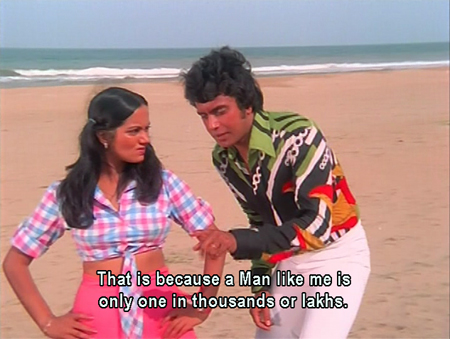 So I have to admit: I came to this film with some trepidation based on my Wardat experience (So Bad It’s Good is not a favorite genre of mine, although it has its place). But I was richly rewarded! Even the mostly dreadful music is interrupted by a couple of gems: the qawwali, for one, and a cute romantic song (“Maine Pyar Kiya”), although I still have never really seen Mithun dance (his attempts to channel Dick Van Dyke and the Riverdance guy bring him marginally closer, but only very marginally). Above all, I just couldn’t stop marvelling at the imagination and derring-do of Ravi Nagaich. Believe me when I say I have flogged you with many screenshots, but I have left a great deal out too!