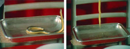 Gopi is delayed in setting out for Dr. Verma’s house by a green and yellow striped water snake hiding in his lunch tiffin. It jumps vertically to great heights in an effort to kill GMG-9.