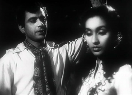 I think this film was subtitled by someone with narcolepsy who kept suddenly falling asleep and upon awakening would simply continue working without going back to see what he had missed. Only about a third to half of the dialogue is subtitled, so I am not sure if my finding the plot difficult to follow was my fault, the narcoleptic subtitler’s fault, or the filmmaker’s fault. In any case, despite this handicap I found this highly entertaining. First of all, the Shankar Jaikishan songs are beautiful (although much of the background music is from Prokofiev’s Peter and the Wolf—which is not a bad thing); secondly, it’s one of Nutan’s first films and she is lovely; and her hero is Nasir Khan (Dilip Kumar’s brother) in the first leading role I have seen him in. It also succeeds pretty well as an atmospheric mystery-suspense-thriller (it was given an “A” certificate by the censors).