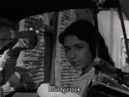 Nanda looks beautiful, but doesn’t have much more to do than smile and look pretty or cry and look pretty. Sunil Dutt is adequate as Nandu, although somehow Nandu isn’t entirely likable for me—spoiled, sulky, prone to throwing tantrums. Durga Khote brings her all as usual to Paro, but the one person whose performance really stands out for me—although as I said her character remains sort of mysterious—is Indrani Mukherjee. Every time I see her I am struck by how beautiful she is: Waheeda Rehman beautiful!