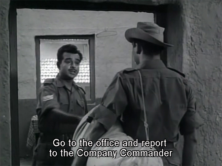 As far as I remember, the story by Chandradhar Sharma was set during the second World War – which, of course, means that that ‘serve the nation’ business is a bit off the mark. I think at the lower levels – where the characters of Tarun Bose, Sunil Dutt and Rajendranath are shown – more Indian officers were beginning to be in control rather than British.