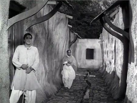 Their love story is furthered through two songs in quick succession: a very pretty Lata solo (“Machali Arzoo Khadi”) and a nice Lata-Talat Mahmoud duet (“Aha Rimjhim Ke Yeh Pyare”) picturized against idyllic bylanes, tidy huts, sprawling banyan trees, and neat-as-a-pin haystacks. So pretty!
