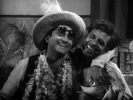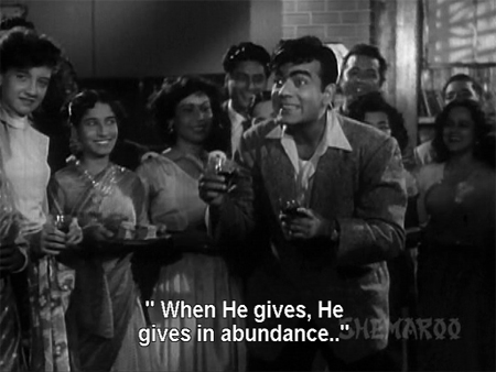 Needless to say, the lap of luxury revives Funtoosh’s spirits, and he enchants Karodilal’s friends with a lively song mocking Uparwala at a party one evening with the help of an uncredited Mehmood: