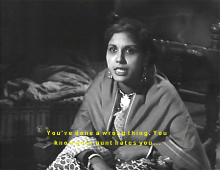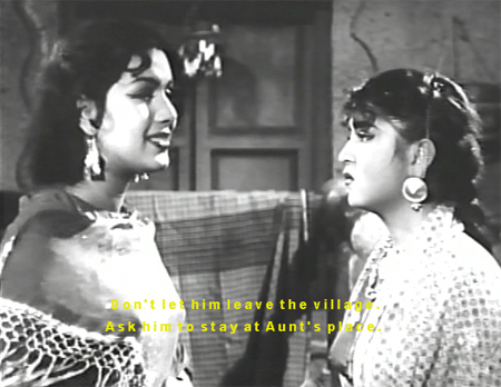 Sahiba, unable to escape her mother’s eagle eye, asks her friend Mora (?) to take a message to Mirza, who is now homeless and despondently considering suicide.