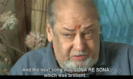Unfortunately, the film doesn’t plumb the depths as well as it might have, remaining a tribute to Panchamda rather than a comprehensive study. There is plenty of discussion on how he used influences gained from western music, for instance, but no discussion on how he also lifted tunes wholesale on occasion (“Mehbooba Mehbooba” being a prime example) (and before you send me hate mail, please let me point out that I am not saying that in judgment, but a relevant debate would have been interesting and possibly even enlightening). Key events and controversies in his life are glossed over, as are hints at some darker aspects of his character (we all have them!). Art in any form is colored greatly by an artist’s experiences and personality; I was not looking for prurient gossip, but I would have liked to see a more three-dimensional picture of him emerge. The lack of it diminishes the film’s credibility somewhat, and since after a point nothing new is being said, it goes on too long.