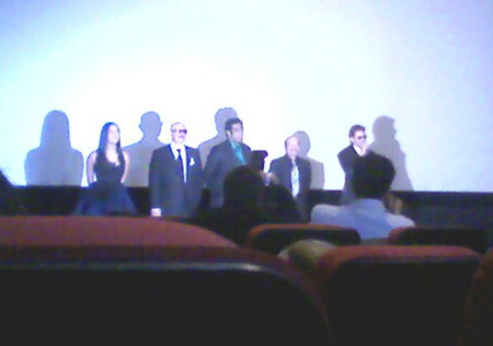My camera is broken and my sister’s is lost, so all I had was my extremely cheap-o mobile phone one, but here are the Roshans and Barbara and Anurag Basu thanking us all for being there. Sorry, it’s Indian-dvd-manufacturer-kwality.