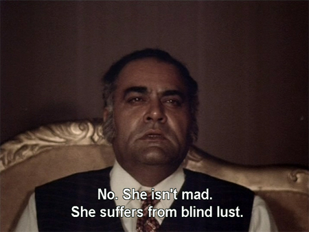 The focus now becomes Kamini and her uncontrollable urges. Deranged closeups always let us know when she has entered The Nympho Zone: