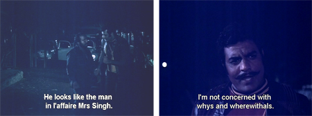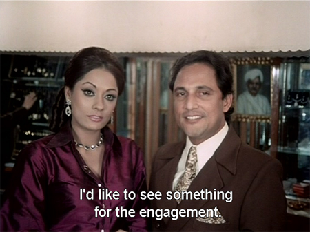 Her seduction technique is demonstrated (“You look like my childhood sweetheart, who died in a [fill in the blank]”) as she targets our pal Alok Nath Jr., who gets more than he bargained for—but not the necklace, to Natwarlal’s chagrin.