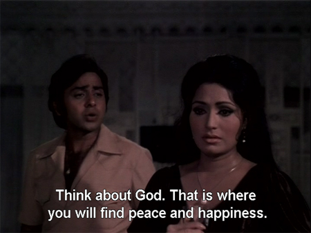 Men are both mesmerized by and fearful of her blatant come-ons. A vague attempt at garnering sympathy for her is made when, drunk and lonely, she calls in Dr. Bali (Vinod Mehra). He is sanctimonious and patronizing (although at least he doesn’t take advantage of her, which is something I guess).