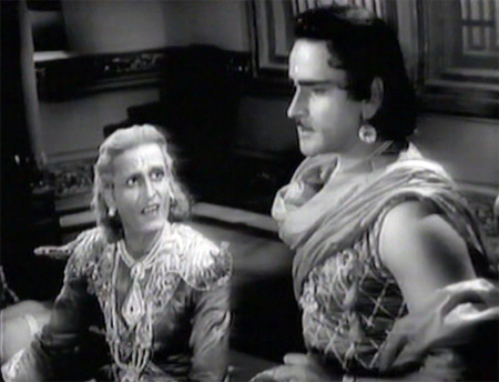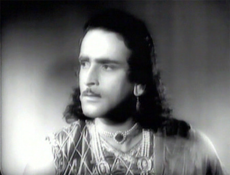 I must thank my friend Muz for sending me this rare treat from Wadia Movietones. While I am not sure what the motivation was for making what is billed proudly as the first all-English talkie made in India by an all-Indian cast and crew, I am surely grateful to not need subtitles. The ill-fated love story is nothing new or earth-shattering, although it contains a nice message about equality and hypocrisy. It is typically 1940s in its formal, stagey acting and stilted language, but Sadhona Bose is glorious as Court Dancer Indrani and of course my would-be father-in-law Prithviraj is beyond gorgeous himself (I have taken about a gazillion screencaps of both of them). The action takes place in early 19th century Manipur and the dancing costumes all remind me of my own little Manipuri dancing doll, although there is a wonderful Art Deco feel to much of it as well.