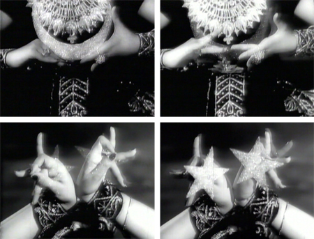 As I said, it’s a simple (and short, too, at an hour and twenty minutes or so) story with a simple message, and there is a LOT of pretty along the way. The dance numbers are beautifully choreographed and performed, with a lovely Wadia special-effects touch at one point to explain how the hand movements of the dance represent the stars and the moon.