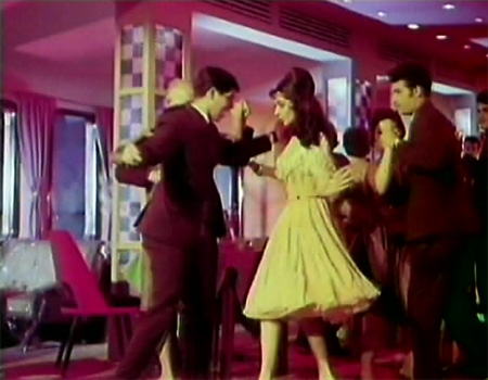 Dev Anand is too cool to dance. His appeal is quite effective just with his hands in his pockets and swishing his head from side to side (trademark I guess).