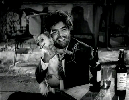Tarun Bose is one of the treasures of Hindi cinema history. He is one of those consummate actors who could and did “disappear” into his roles, making it difficult if not impossible sometimes for a fan to identify him as “Tarun Bose.” He was taken from us and from his loved ones by a heart attack—far too soon and far too young—in 1974, but was a key player in many memorable films before that. The above screen shot is of his first appearance onscreen, about three minutes into his 1957 debut film Apradhi Kaun.