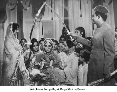 When I say rough up what I mean is molesting the heroine. In Bollywood it is almost mandatory for the villain to molest the heroine. Dad was not at all comfortable doing such roles and he therefore avoided them. He did play the villain. In films like ‘Shama’,  ‘Benazir’ and ‘Anokhi Raat’ he had his evil eye on the heroine and if I may add, he was very convincing as the ‘Chhata Hua Badmash’ as they say in Hindi (how does one translate that into English—‘a real villain’—I guess you get the message). He did all his villainy by keeping a more or less safe distance from the heroine and if at all he touched her, it was not that bad. My personal favourite of him as a villain is ‘Shama’. There were two heroines in this film, Suraiya and Nimmi, both in love with the hero Vijay Dutt. While Suraiya played dad’s sister, Nimmi was the lady he wanted to marry. I loved his performance in this film; unfortunately both ‘Benazir’ and ‘Shama’ did not meet with much success at the box-office.