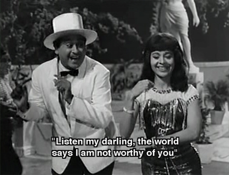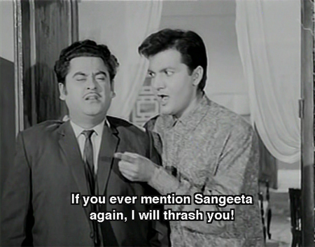 Bela covers for an absent Sangeeta one evening, and she and I.S. Johar perform this wonderful song mocking Bihari. It is LAXMI FAB, and you really can’t praise with greater praise than that. And a big thanks to Tom for uploading my favorite songs so I could put them in here!