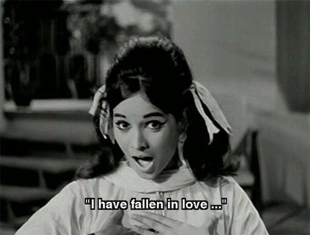 Kum Kum is wonderful (and looks beautiful) in this, and it’s so much fun to see her dosti with Laxmi too. Nice to see a close female friendship for once! And also so much fun to see Prem Chopra in a benign role—exasperated! but he loves the ditzy Kishore too.