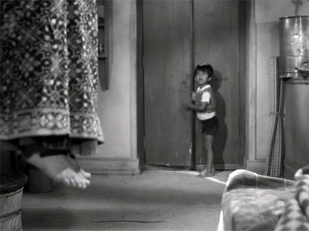 It does begin on a grim note, in black and white, as we are introduced to little boy Raja who is ill. His fretting mother (Indrani Mukherjee) is forced to go to her wealthy employer (?) to ask for money for his treatment. Her unscrupulous boss will give her money on one condition—she must become his mistress.