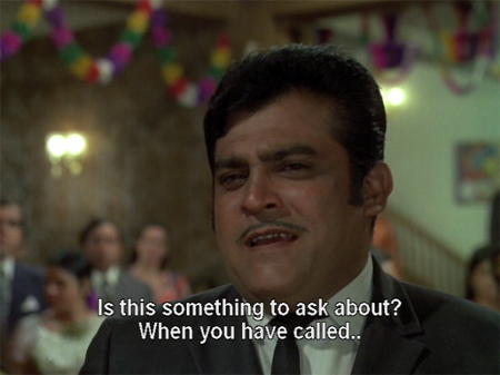 He is chased one night into a house decorated for a wedding, where he finds a note alongside the groom’s wedding outfit. The groom has fled his arranged marriage, and as the priest and the groom’s parents (Iftekhar and Dulari) call for their son to come and get married the police also arrive. Cornered, Raja dons the flower-bedecked turban and gold sherwani and marries the poor unsuspecting bride as the police search the house.