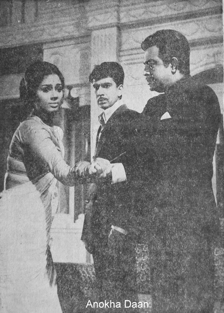 Asit Sen was another director whom dad appreciated and what he liked about Asit Sen was his shot taking: the way he framed his shots, the placing of the camera at a low angle, and the close ups. The shot of “Annadata” that you see here is a typical Asit Sen shot composition. “Anokhi Raat”, “Annadata” and “Anokha Daan” were the films which dad did with Sen. “Anokha Daan” was based on the classic novel “Inspector General” which was made into an English film featuring Danny Kaye. Several years later there was a Bengali film based on this story featuring Uttam Kumar. “Anokha Daan” had Kabir Bedi, then a newcomer, in the lead. My father played the role of a corrupt politician, but unfortunately Asit Sen the maker of such sensitive films as “Mamta”, “Safar” and “Khamoshi” had lost his touch and the film was a flop. Although it did not matter to dad since the film had released after he passed away, I feel it was quite unfortunate because he was very happy with this role and had worked very hard to give an excellent performance.