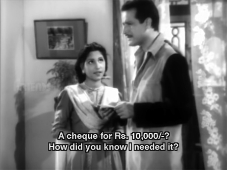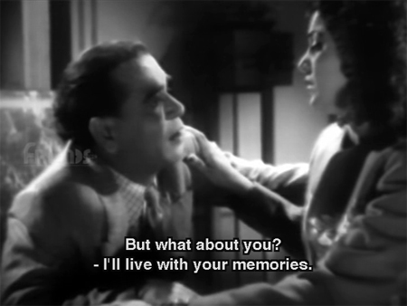 I just wondered-if we ignore PUrnima’s soppy ways and focus on the fact that Purnima loves Shyam, does her sincere feeling not deserve to be reciprocated? It raises the bigger philosophical question in my mind about unrequited love- in Indian movies (and correspondingly, in my mind), its always seems noble to selflessly love someone regardless of their feelings. Yet, in the West, I often find it being looked down upon. It seems to me that in the Western mind, moving on and such practical feeling is considered more acceptable. I wonder what you think about this. My perceptions have been formed by having lived in Canada for little over a decade- so I may be wrong and apologize in advance.
