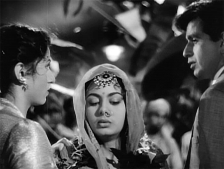 I’ll stick up for her, too. I think she’s wonderful in this. It’s her movie all the way while Madhubala doesn’t have much to do other than to look beautiful (very, very beautiful) and act virtuous, and Dilip Kumar is a creep posing as a good guy. And I liked her in Barsaat as well. Sure, Nimmi may be a one trick pony, but it’s a very good trick. The fact that’s she’s always the ‘drama princess’ is at least partly the fault of the producers who kept casting her as one. She was a skilled, if somewhat overly dramatic, actress