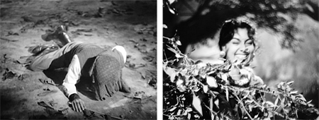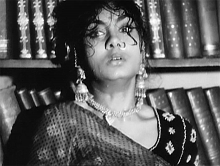 At the fair’s end, a storm blows up and Sonia makes her way home. She soon realizes that Sankat, torn apart by jealousy and rage, is following her and a frightening cat-and-mouse game commences, which includes some amazing photography—especially when Sonia hides underwater in a pond as Sankat fishes around for her in the dark water, his dhoti billowing near her head.