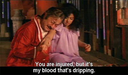 Later, she cuts her own hand (in remorse? or because the mirrored prison she lives in is torturing her?). (Seriously, should someone who is mad be surrounded by walls of mirrors? Questions, only questions!):