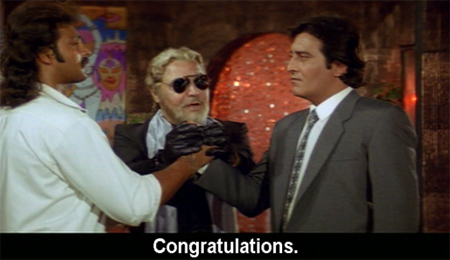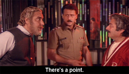 What is the connection between these three? Why are they hand-in-sinister-black-glove(s) with each other? Is Sita really dead? Can this film get any worse? I can’t honestly tell you, because at this point in the proceedings, I am interrupted to go out for dinner with some friends. I tell them about the story thus far, and they stare at me.