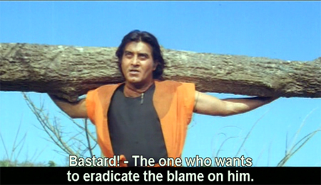 Against an epic backdrop of one-sided sibling rivalry, rock-em sock-em lumberjack action, bizarro world medical pronouncements, ham-fisted Mahabharata references, unrequited puppy-love, puffy sleeves and big-budget musical excess lies a plot which I will mostly let speak for itself through screenshots, because all it left me with were questions.