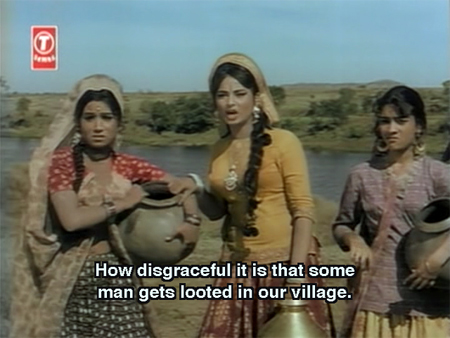They pitch in with enthusiasm, breaking their clay water pots over goonda heads, until the bad guys run away in defeat. Vikram promises to replace their broken clay pots with metal ones, and continues home with Kasim.