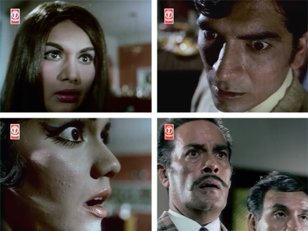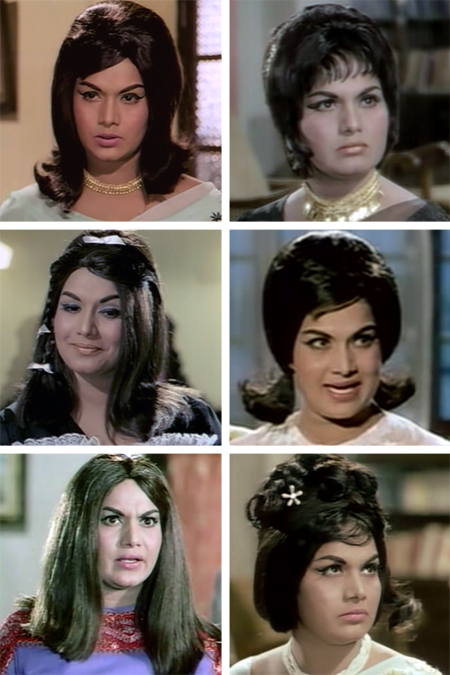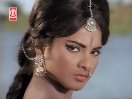 It’s my understanding that this film was a big hit, and responsible for bringing both Rekha and Navin Nischol to the public’s attention. I am not really sure why, since it is fairly run-of-the-mill stuff; but Sonik-Omi’s songs are lots of fun and the second half did take an unexpected twist just as I was about to nod off. What got me through it were the large assortment of wigs (almost everyone wore them—including the hero—although Shyama’s were particularly fascinating), Jayshree T’s mad dancing skills, a lot of Woman Power, and young whippersnapper Ranjeet as Rekha’s slimy brother (Ranjeeeeeeeet!).