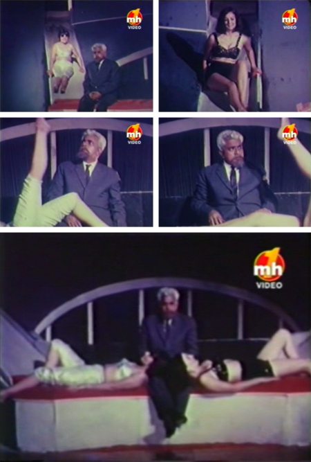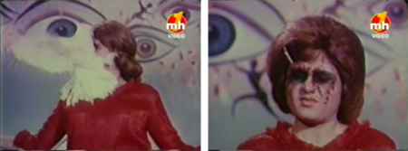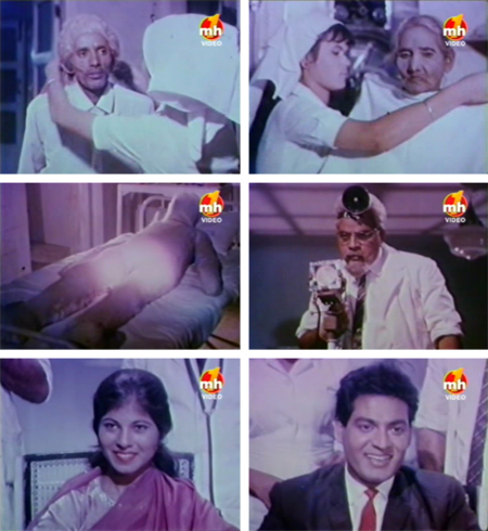 Back in India, Rajesh has tracked down Dr. Sharma’s daughter Kamini (Jaymala) in a hospital, where she throws things at the nurses. Jaymala reminds me strongly of a buxomy over-blown fifties Hollywood film star a la Jayne Mansfield or similar, which I mean as a great compliment, by the way.